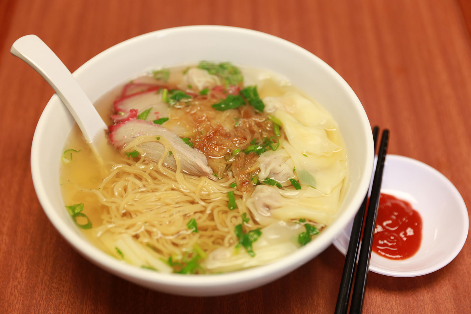 N15. Wonton Noodle Soup $11.25 Hoành Thánh Mì Quantity Add to cart SKU: wonton-noodle-soup Categories: Hoành Thánh - Wonton, Noodle & Soup Description Description Wonton, egg-noodle is served in clear broth topping with shrimp, BBQ pork. Related products N11. Pork & Shrimp Clear Noodle SoupHỦ TIẾU NƯỚC $11.25 Quantity Add to cart N4. Brisket & Beef ballPHỞ NẠM & BÒ VIÊN $11.55 Quantity Add to cart N9. Beef Stew w/BreadBÁNH MÌ BÒ KHO $9.25 Quantity Add to cart Grilled Pork & Egg Roll VermicelliBún thịt nướng chả giò $9.25 Quantity Add to cart